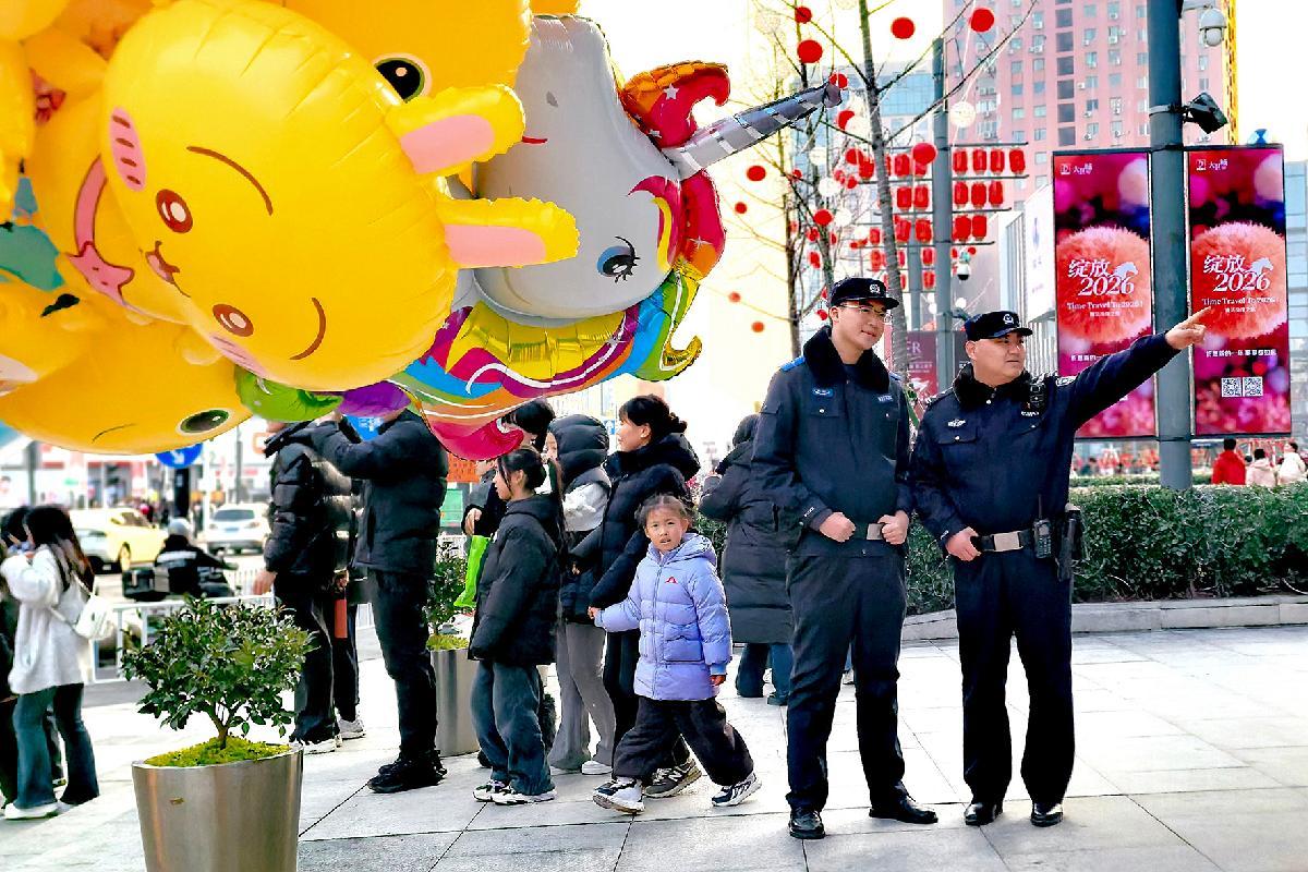 1月1日,河南省鄭州市公安局金水分局杜嶺派出所民輔警在轄區(qū)廣場執(zhí)勤巡邏。