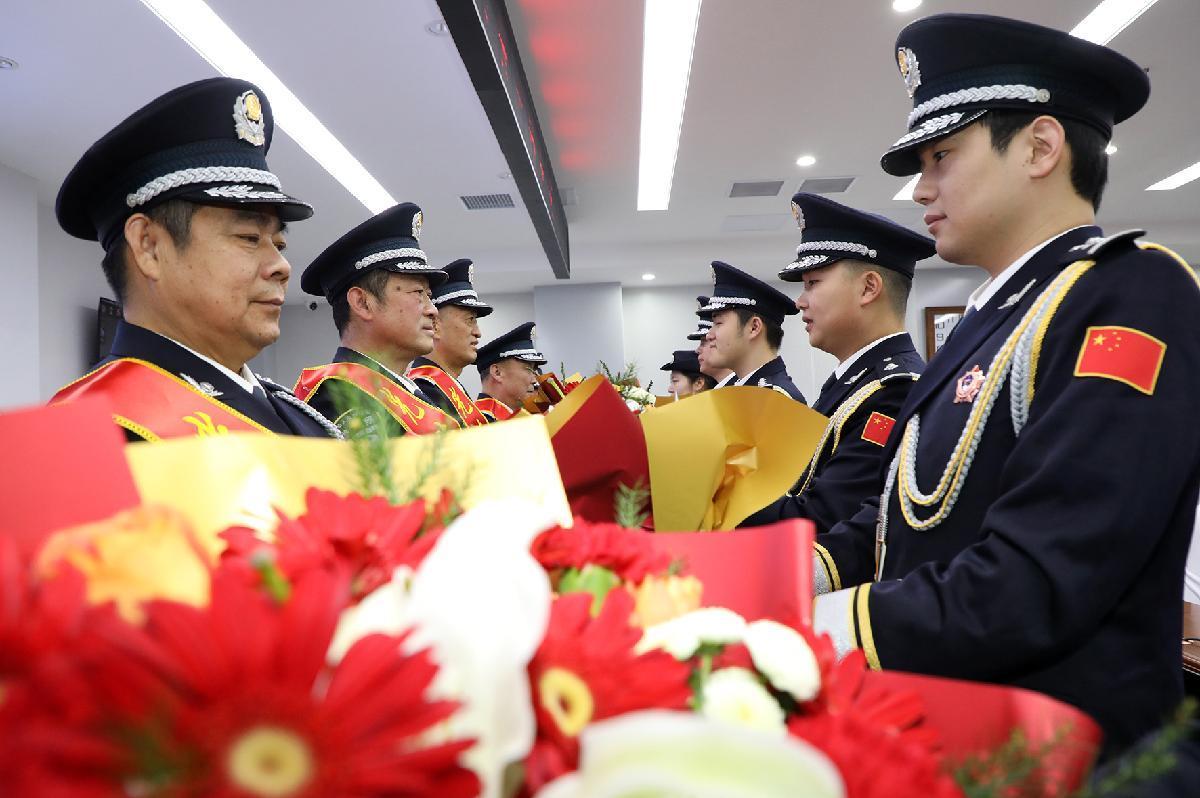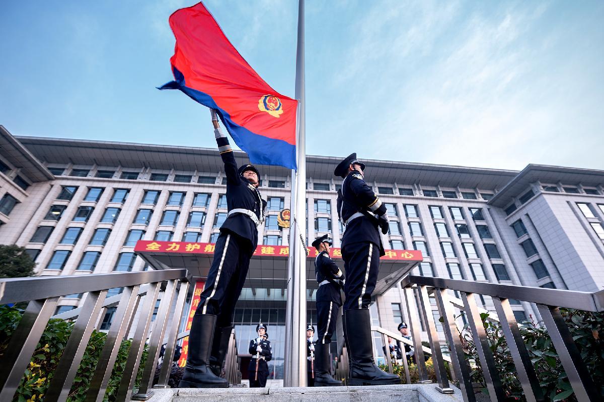 1月10日,浙江省臺州市公安局黃巖分局舉辦升警旗儀式,慶祝第六個中國人民警察節(jié)。
