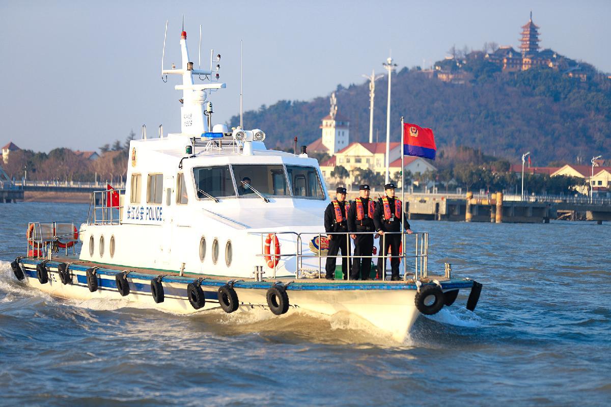 1月8日,長江航運公安局南通分局民警在南通五山片區(qū)水域開展巡邏。