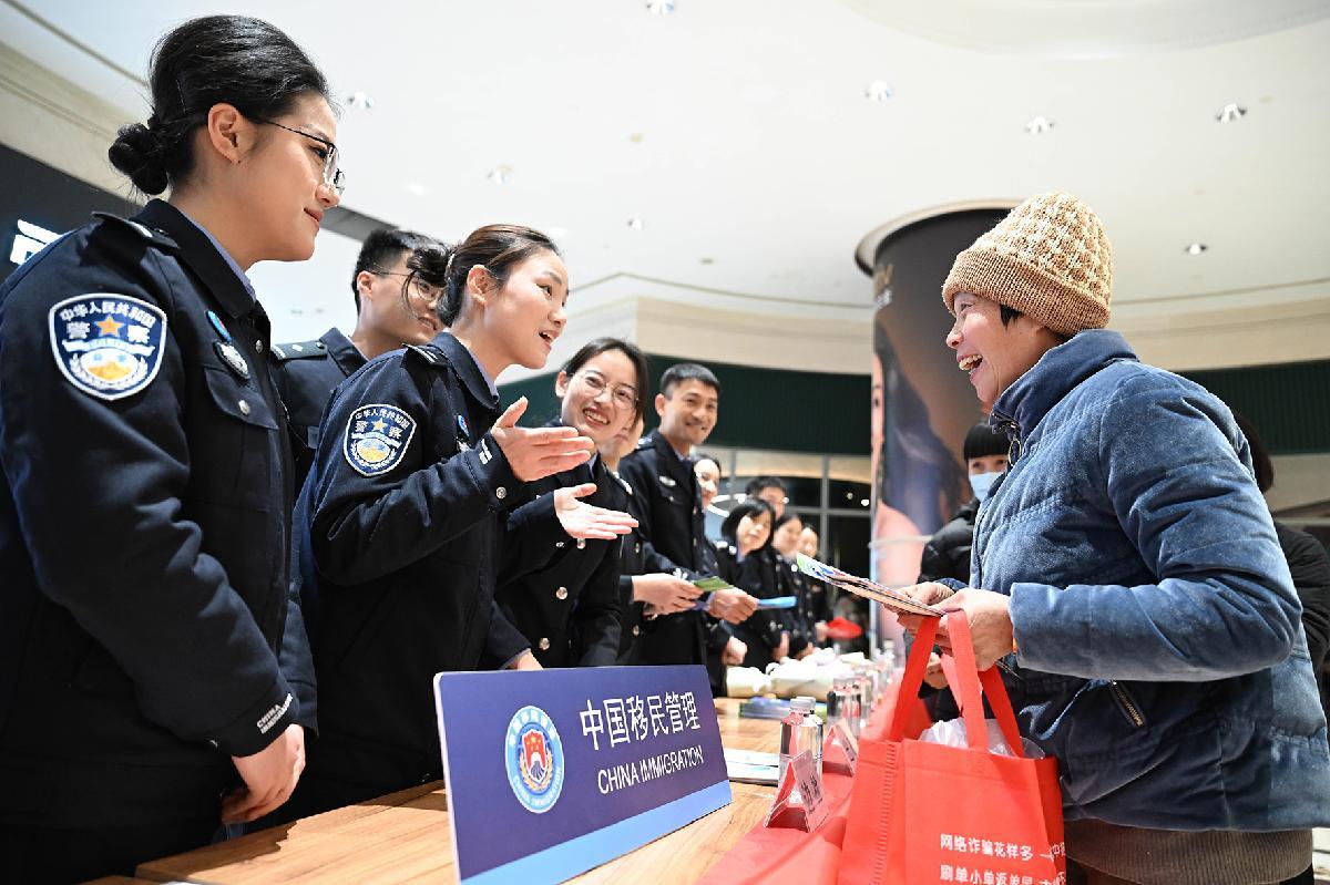 1月9日,江蘇出入境邊防檢查總站張家港出入境邊防檢查站聯(lián)合張家港市公安局開展中國人民警察節(jié)主題宣傳。