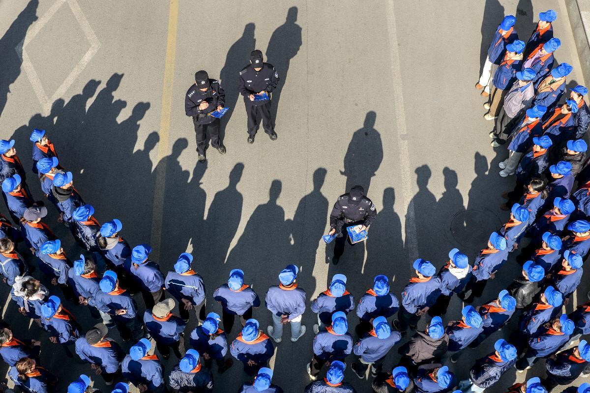 圖為1月13日,民警在一家企業(yè)進行反詐、安全生產(chǎn)等知識宣講。