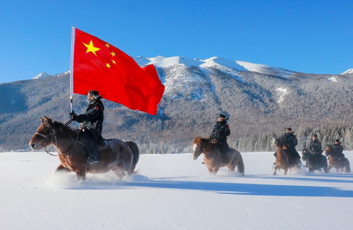 1月15日,新疆出入境邊防檢查總站阿勒泰邊境管理支隊(duì)喀納斯邊境派出所馬隊(duì)巡護(hù)隊(duì)冒著零下47℃的嚴(yán)寒,對重要山口要道、游客集中區(qū)域開展巡邏踏查。