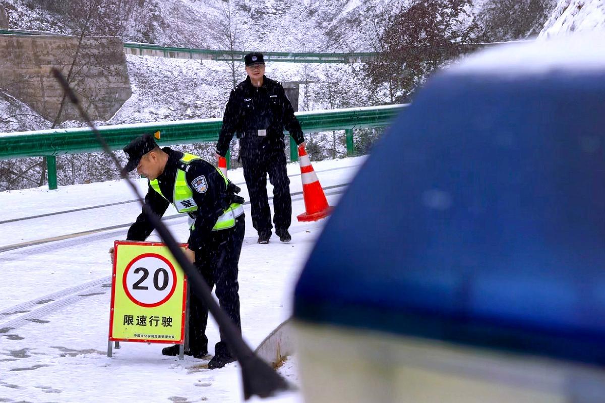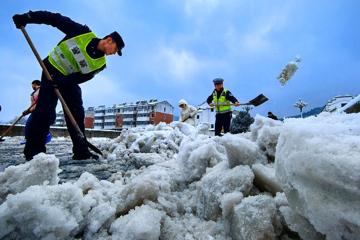 1月20日,安徽省巢湖市公安局交管大隊全警動員,全力應(yīng)對降雪、結(jié)冰天氣,加強路面交通安全管理,確保安全暢通。