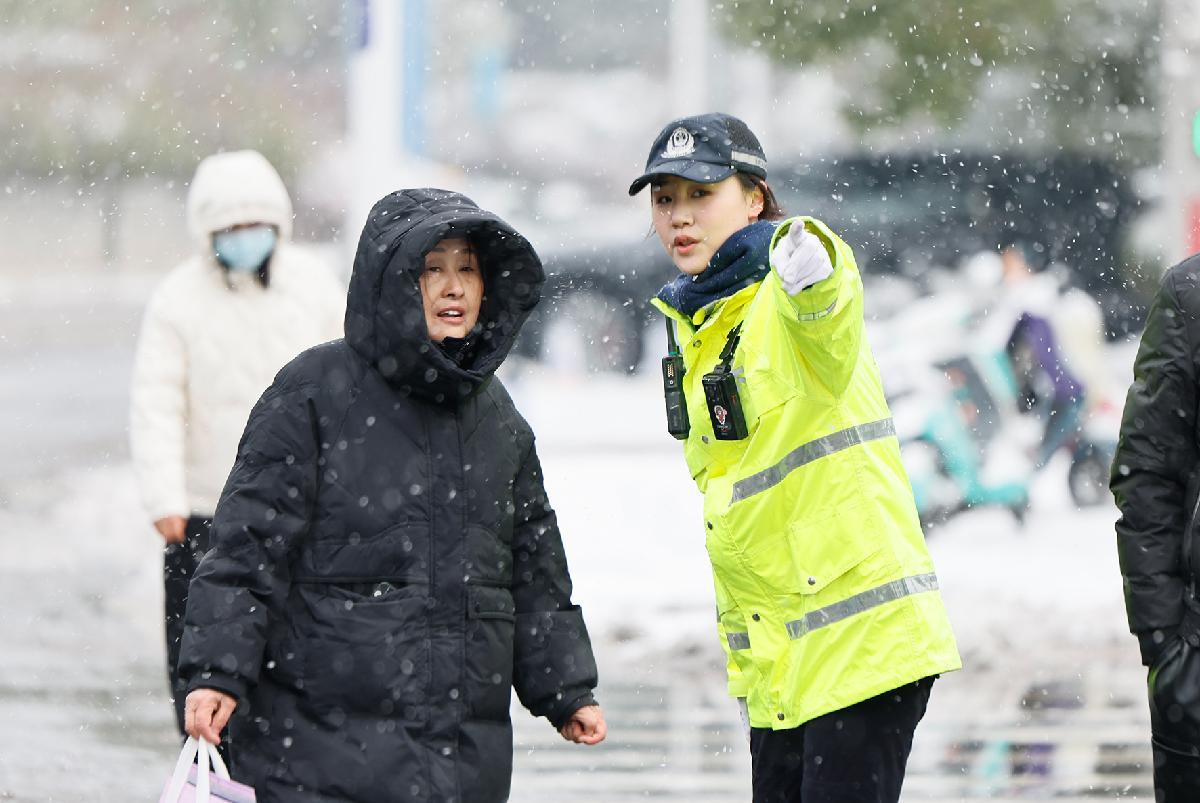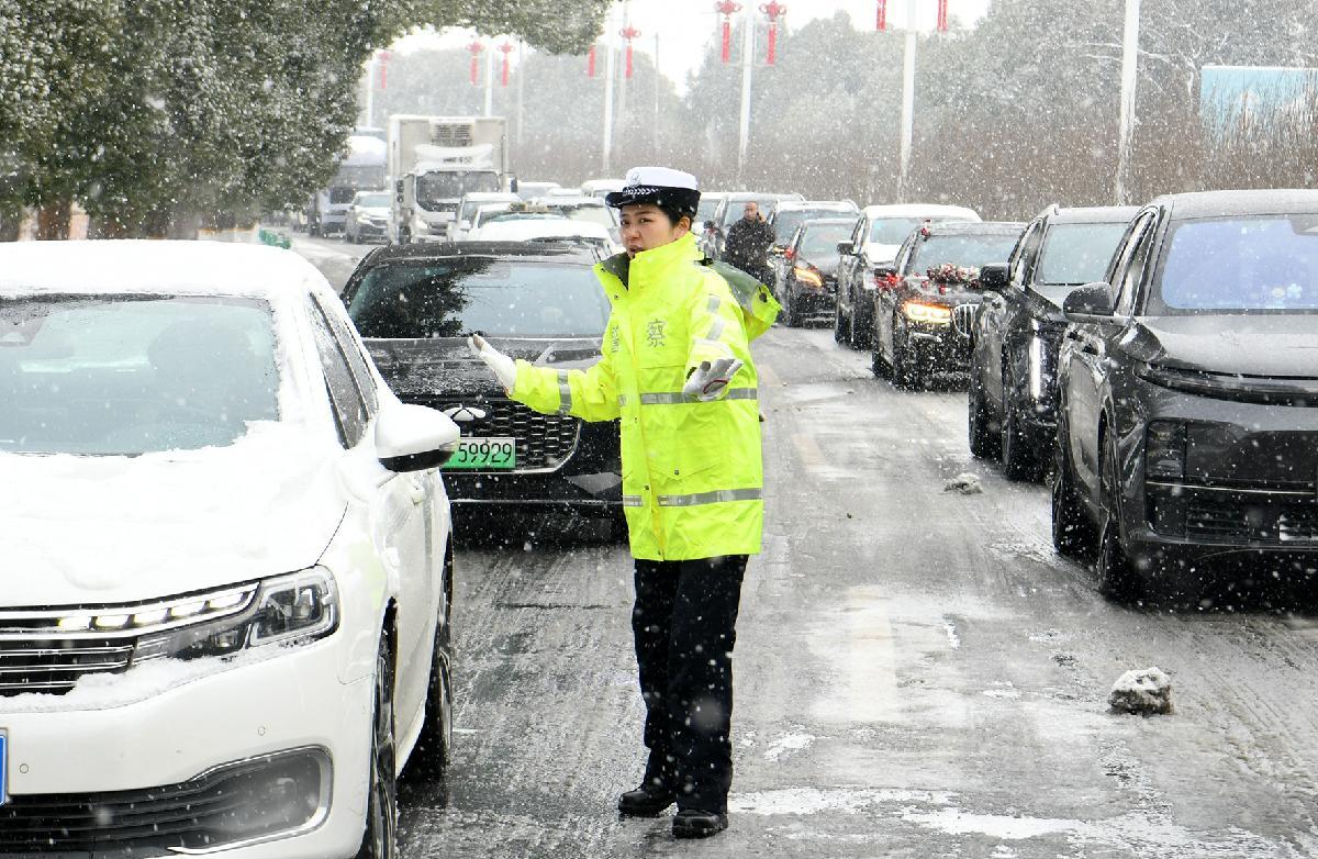 1月20日,安徽省蕪湖市主城區(qū)迎來暴風(fēng)雪天氣。蕪湖市公安局交管支隊弋江大隊全警上崗,疏導(dǎo)交通,確保轄區(qū)道路暢通有序。