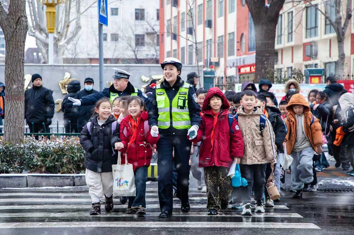 1月19日,山東省滕州市公安局交通管理大隊以雪為令,依托“護(hù)學(xué)崗”,為雪天出行的廣大師生保駕護(hù)航。