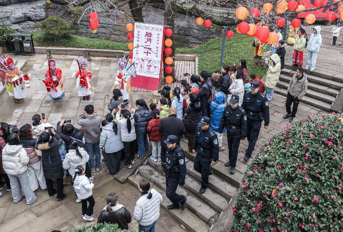2月7日,浙江省武義縣公安局壺山派出所民輔警在轄區(qū)年俗文化節(jié)活動(dòng)現(xiàn)場(chǎng)巡邏執(zhí)勤,守護(hù)鄉(xiāng)村濃濃的年味。