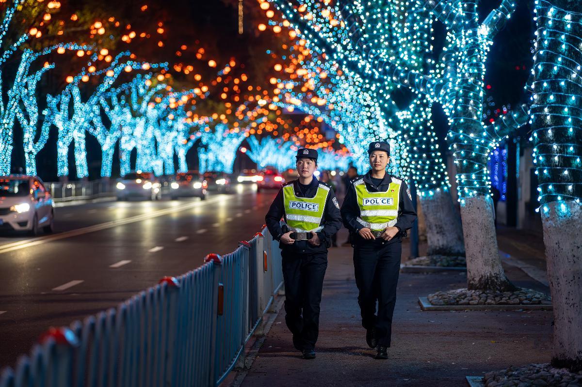 3月6日,浙江省臺州市公安局黃巖分局城東派出所女民警在東官河路執(zhí)勤巡邏,在崗位上迎接三八節(jié)的到來。