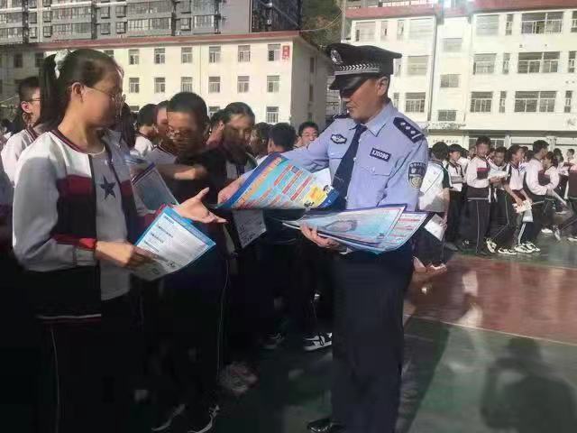 在“6·26”國際禁毒日即將到來之際,陜西省富縣公安局城關(guān)派出所民警進(jìn)學(xué)校開展禁毒宣傳。圖為6月18日,民警向?qū)W生發(fā)放宣傳資料、宣講禁毒法規(guī)。