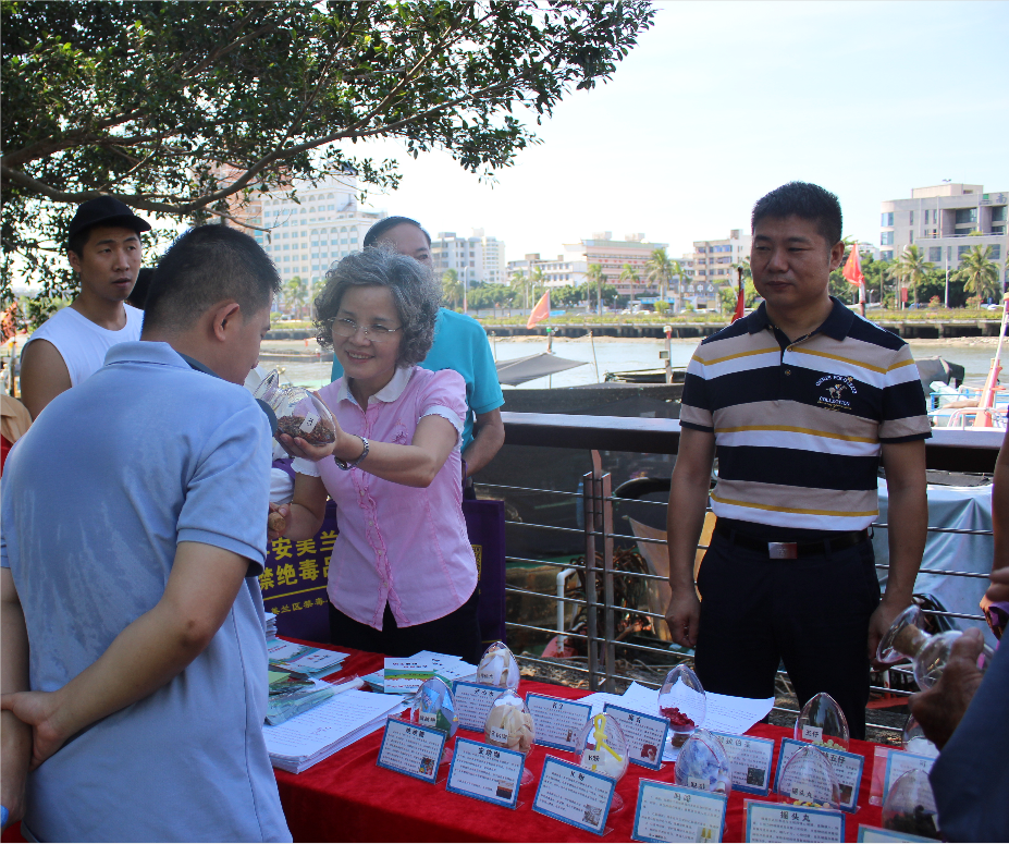 值“6·26”國(guó)際禁毒日到來(lái)之際,海南省海口市美蘭區(qū)海甸街道海岸線(xiàn)驛站開(kāi)展“護(hù)航自貿(mào)港—禁毒在行動(dòng)暨慶祝建黨100周年”為主題的全民禁毒宣傳。圖為6月20日,工作人員為漁民介紹毒品的危害。