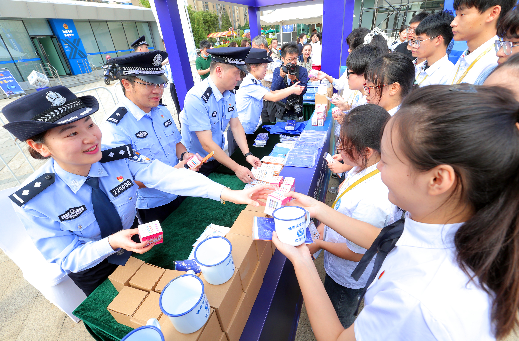 連日來,江蘇省宜興市公安局組織開展以“網(wǎng)絡(luò)安全為人民,網(wǎng)絡(luò)安全靠人民”為主題的2021年國家網(wǎng)絡(luò)安全宣傳周活動,通過發(fā)放宣傳手冊、擺放宣傳展板、提供法律咨詢、發(fā)放網(wǎng)安小禮品等形式,向廣大群眾普及預(yù)防網(wǎng)絡(luò)詐騙、加強個人信息保護等網(wǎng)絡(luò)安全知識。圖為10月12日,宜興市公安局民警在市民廣場向青少年學(xué)生講解網(wǎng)絡(luò)安全及防詐常識。