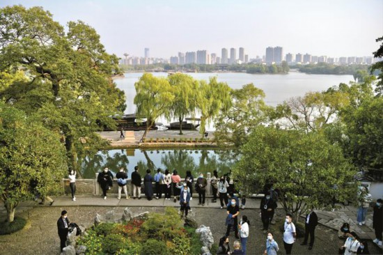 10月27日,在嘉興南湖景區(qū)的湖心島上,游客們前來(lái)瞻仰紅船。金秋時(shí)節(jié),天氣晴好,嘉興紅色旅游再度升溫。(王振宇)