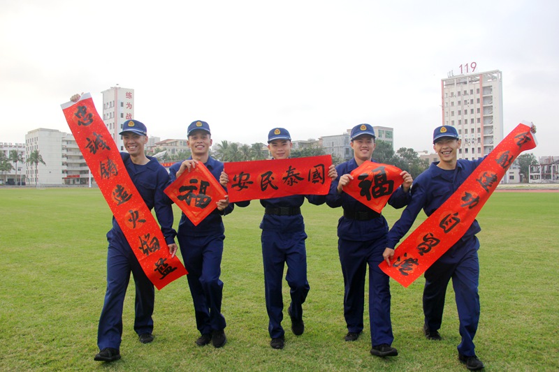 千門萬戶曈曈日,總把新桃換舊符。1月26日下午,新春佳節(jié)將至,海南省書法協(xié)會(huì)書法家走進(jìn)海南省消防救援總隊(duì)為消防救援人員寫春聯(lián)、教書法、送祝福。(符武平)