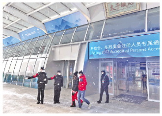 農(nóng)歷臘月二十九上午,北京鐵路公安局局長王旭章來到了太子城站,慰問閉環(huán)區(qū)的民警們?!案糁嗝走h(yuǎn),局長代表局黨委向我們表達(dá)了新年的祝福以及冬奧安保的囑托。天氣很冷,但我們的心里很熱。我們也請局黨委放心,我們一定會用全部力量護(hù)航平安冬奧。”張雄回憶起當(dāng)時的情形,閉環(huán)區(qū)內(nèi)廣場上的國外友人,包括媒體記者,看到中國警察整齊地站在那里,聽到了他們的對話,都表示深感震撼。