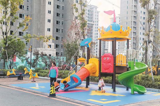 居民百姓樂享舊改成果,圖為金色橄欖城三期兒童游樂設(shè)施。(資料圖片)