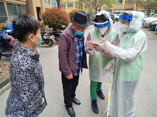志愿者們?yōu)闊o(wú)手機(jī)老人登記核酸檢測(cè)碼