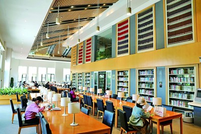 3月29日,湖北武漢春意正濃,游人在武漢經(jīng)濟開發(fā)區(qū)湯湖公園圖書館看書學(xué)習(xí),品味書香。趙軍攝/光明圖片