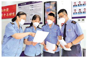 5月5日一大早,新華街道市場(chǎng)監(jiān)管所黨支部書(shū)記、所長(zhǎng)王麗俠接到市場(chǎng)監(jiān)管所所在小區(qū)實(shí)行封控管理的通知。除了要第一時(shí)間通知還在上班路上的同志們掉頭回家、嚴(yán)格按照疫情防控要求向社區(qū)報(bào)告的同時(shí),她還想到所里的下一步工作該如何進(jìn)行。除了市場(chǎng)主體登記、日常執(zhí)法檢查、經(jīng)濟(jì)違法行為查處和維護(hù)消費(fèi)者合法權(quán)益等日常工作,進(jìn)口冷鏈?zhǔn)称窓z查,生活必需品價(jià)格穩(wěn)定以及藥店、有形市場(chǎng)、“五類”之外市場(chǎng)主體的疫情防控一刻也不能停歇,更容不得出半點(diǎn)差錯(cuò)。封控期間,這些工作一項(xiàng)也不能停,都得有人做。