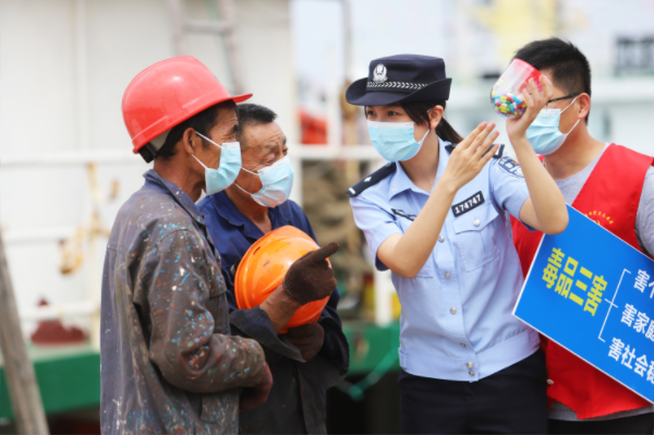 “6·26”國際禁毒日臨近,浙江省臺(tái)州市路橋區(qū)金清鎮(zhèn)禁毒辦把六月定為“禁毒宣傳月”,組織公安民警、禁毒社工等進(jìn)村居、企業(yè)、學(xué)校、碼頭開展禁毒宣傳,普及禁毒法規(guī),共筑禁毒長城。圖為6月8日,金清派出所民警在漁港碼頭向休漁期維修漁船和織網(wǎng)補(bǔ)網(wǎng)的漁民宣傳毒品危害及禁毒法規(guī)。