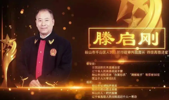【人物簡(jiǎn)介】 滕啟剛,中共黨員,生前為遼寧省鞍山市千山區(qū)人民法院行政審判庭庭長、四級(jí)高級(jí)法官。在法院工作31年間,先后從事刑事審判、民事審判、信息化管理、行政審判等工作。2021年6月4日,在家中因突發(fā)腦出血搶救無效去世,終年57歲,同年11月被遼寧省委宣傳部追授“遼寧時(shí)代楷模”榮譽(yù)稱號(hào)。