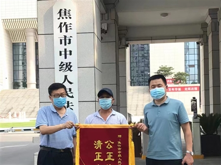 圖為當事人給法院送錦旗。