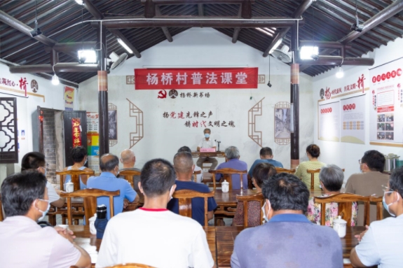 這堂課的主講人是楊橋村“法治帶頭人”劉銀海,娓娓道來的不僅有楊橋的耕讀文化和農(nóng)作習(xí)俗,還有最新的政策、法律。今年以來,楊橋村將本村特色景點與鄉(xiāng)村法治建設(shè)相結(jié)合,利用“法治帶頭人”“法律明白人”等用村民聽得懂的語言開展法治宣傳、提供法律咨詢、調(diào)解矛盾糾紛等,打通了鄉(xiāng)村法治建設(shè)的“最后一公里”。