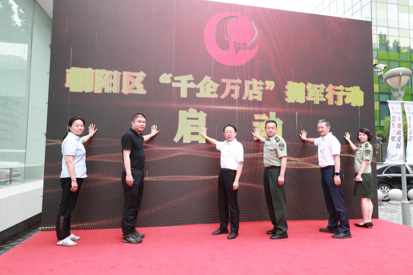在中國人民解放軍建軍95周年即將到來之際,為提升首都雙擁工作服務(wù)保障力度,進(jìn)一步做好北京市社會化擁軍活動的拓展延伸,7月30日上午,朝陽區(qū)“千企萬店”擁軍行動啟動儀式在三里屯西街隆重舉行。北京市退役軍人事務(wù)局副局長賀軍,市退役軍人事務(wù)局擁軍優(yōu)撫處處長楊樹旺,朝陽區(qū)委常委、武裝部部長王維民,副區(qū)長孟銳,區(qū)退役軍人事務(wù)局局長田志剛,以及三里屯街道、奧運(yùn)村街道、管莊地區(qū)主要領(lǐng)導(dǎo),簽約單位、駐區(qū)部隊(duì)代表參加活動。