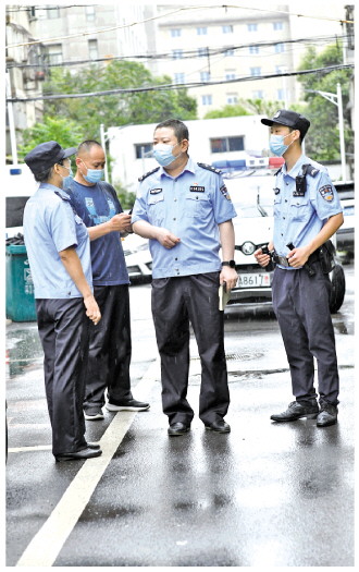 “最近強(qiáng)對(duì)流天氣多,糾紛和求助類警情也多發(fā),為及時(shí)應(yīng)對(duì)突發(fā)情況,我們?nèi)客捅置?,有警處警、無(wú)警巡邏,遇到警情第一時(shí)間進(jìn)行處置。”7月22日,河南省鄭州市區(qū)出現(xiàn)大到暴雨天氣,鄭州市公安局金水分局未來(lái)路派出所所長(zhǎng)苗斌帶領(lǐng)民輔警一邊巡邏一邊商議著緊急情況下的警情處置工作,濕透的警服緊緊貼在身上。