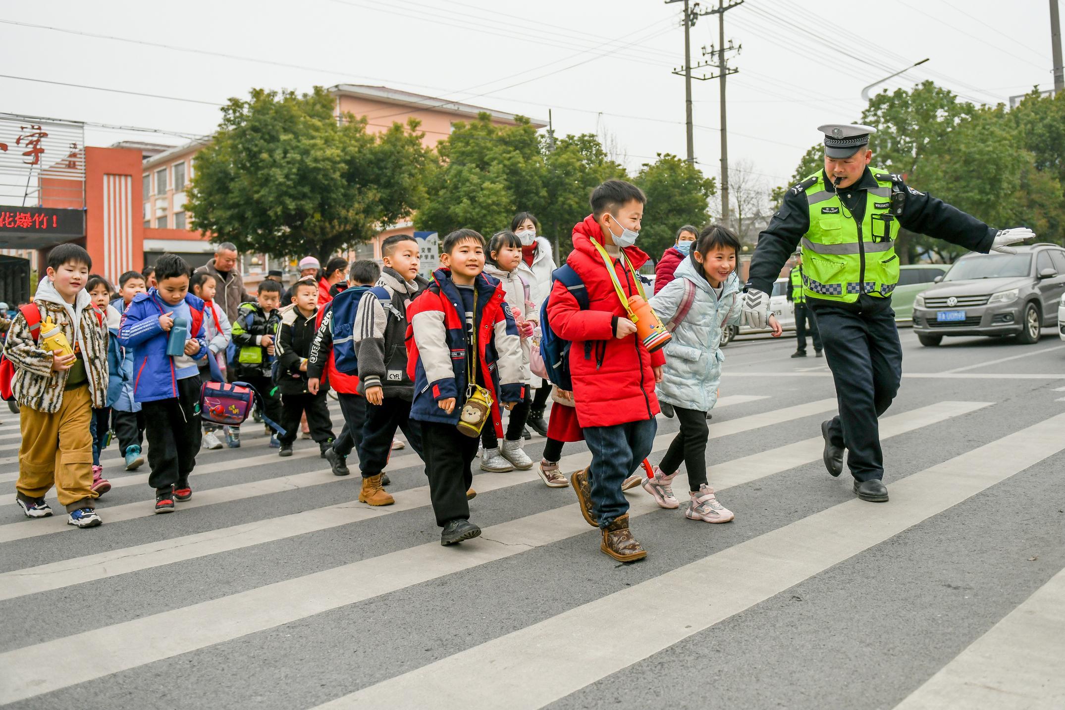 2月8日是安徽省馬鞍山市和縣中小學(xué)開學(xué)第一天,“交警護(hù)學(xué)崗”同步啟動(dòng),執(zhí)勤交警及時(shí)維護(hù)校園周邊秩序,保障師生出行安全。圖為和縣交警正在歷陽(yáng)鎮(zhèn)第三小學(xué)門口護(hù)送學(xué)生安全過(guò)馬路。 本報(bào)通訊員 秦祖泉 攝