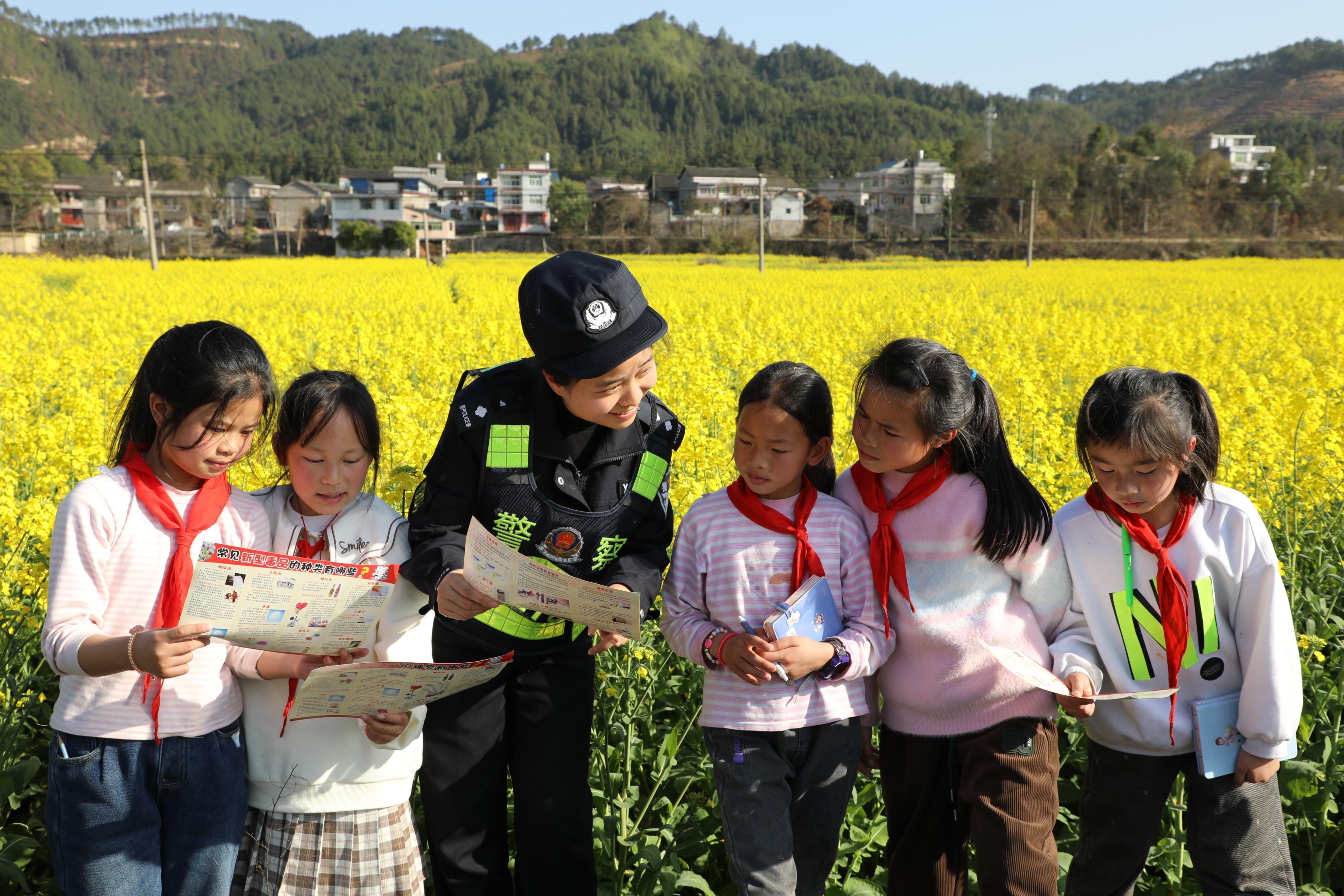 3月10日,貴州省三穗縣公安局長吉派出所組織民警深入轄區(qū)開展平安建設(shè)宣傳活動,圍繞預(yù)防電信網(wǎng)絡(luò)詐騙、禁毒、森林防火等內(nèi)容向未成年人進(jìn)行宣傳。圖為民警向轄區(qū)小學(xué)生講解禁毒知識。 通訊員 吳芳秋 攝