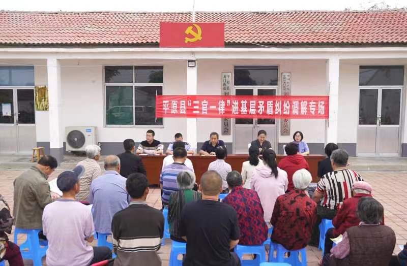 平原縣政法系統(tǒng)充分發(fā)揮法治作用,加快推進(jìn)基層社會治理現(xiàn)代化,開展“三官一律”即“檢察官、法官、警官和律師(法律工作者)”進(jìn)村社活動。政法干警從機關(guān)向基層下沉,努力夯實基層基礎(chǔ),全力維護(hù)基層平安,主動化解矛盾糾紛,促進(jìn)鄉(xiāng)村法治建設(shè),打通農(nóng)村法治服務(wù)的“最后一公里”。圖為“三官一律”在龍門街道劉莊村調(diào)解矛盾糾紛。德州市委政法委供圖