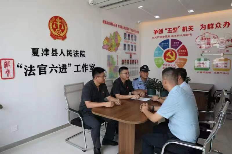 圖為2022年7月4日,夏津縣人民法院“鄃和·法官六進(jìn)”工作室速裁團(tuán)隊對一起民間借貸糾紛開展訴前調(diào)解工作。德州市委政法委供圖