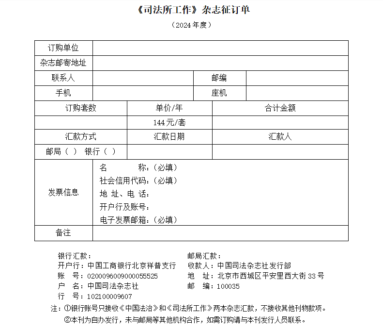 收款人:中國(guó)司法雜志社發(fā)行部