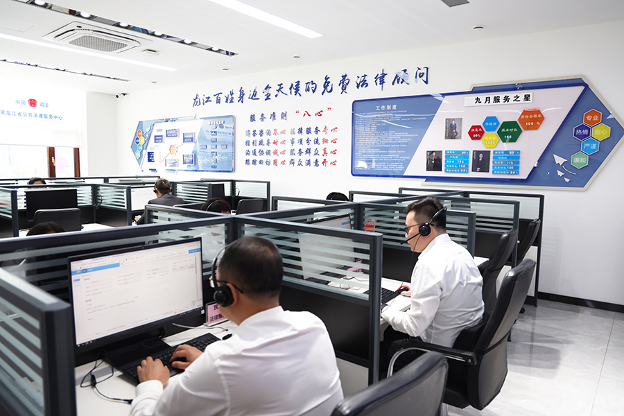 圖為黑龍江省公共法律服務(wù)中心熱線網(wǎng)絡(luò)服務(wù)區(qū)