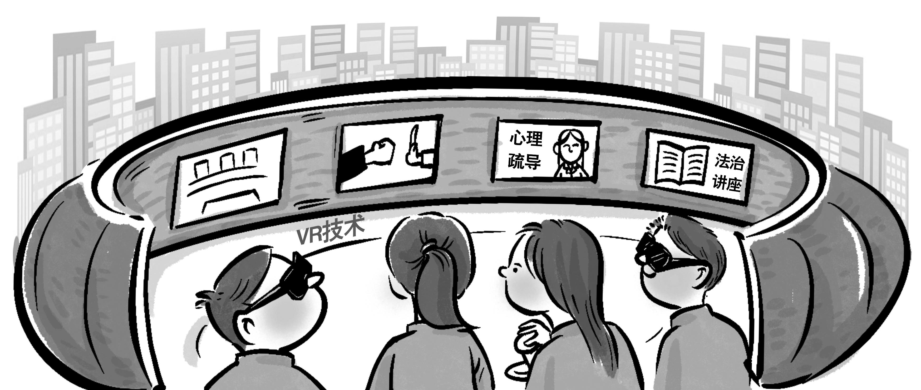《法治日?qǐng)?bào)》記者看到,《VR防校園欺凌》借助VR頭盔、手柄等配件,對(duì)校園暴力情景劇的發(fā)展路徑進(jìn)行可視化選擇,讓青少年深度體驗(yàn)面對(duì)校園暴力時(shí)不同選擇帶來(lái)的后果。而在“小桔燈”青少年法治教育基地走廊,以漫畫形式講述青少年違法犯罪的原因、不良行為容易引起違法犯罪、未成年人刑事責(zé)任和民事責(zé)任年齡等法律知識(shí),讓青少年學(xué)習(xí)了解相關(guān)法律知識(shí)。在心理咨詢室,設(shè)有心理測(cè)試自助管理系統(tǒng)以及沙盤游戲,青少年可以在心理咨詢師的指導(dǎo)下開(kāi)展心理測(cè)評(píng),解決在學(xué)習(xí)和生活中遇到的心理困擾和問(wèn)題。社區(qū)矯正觀護(hù)中心則主要以樹(shù)立積極陽(yáng)光的心態(tài)為主題,讓青少年在感受法律威嚴(yán)的同時(shí),積極開(kāi)展矯治教育,讓問(wèn)題青少年順利回歸社會(huì)。