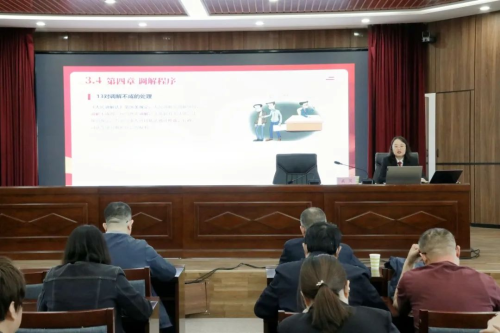 4月24日,內(nèi)蒙古自治區(qū)烏海市烏達(dá)區(qū)人民法院組織開展了2025年度特邀人民調(diào)解員培訓(xùn)班。立案庭庭長(zhǎng)武笑為20余名人大代表、政協(xié)委員特邀調(diào)解員帶來了一場(chǎng)干貨滿滿的法律知識(shí)課程。