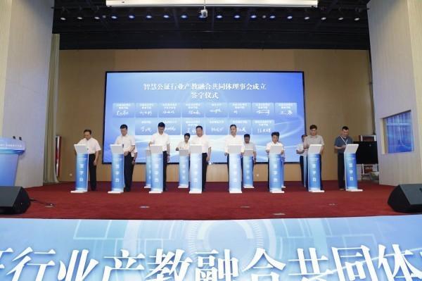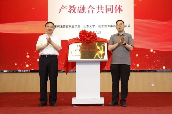 為深化產(chǎn)教融合,加強(qiáng)“政行企?!焙献?,推動(dòng)公證事業(yè)高質(zhì)量發(fā)展,6月13日,由山東大學(xué)、山東司法警官職業(yè)學(xué)院、山東省濟(jì)南市齊魯公證處共同牽頭發(fā)起,全國(guó)50多家公證機(jī)構(gòu)、高校、企業(yè)、科研機(jī)構(gòu)及行業(yè)協(xié)會(huì)共同參與的智慧公證行業(yè)產(chǎn)教融合共同體成立大會(huì)在山東司法警官職業(yè)學(xué)院濟(jì)南校區(qū)舉行。山東省司法廳黨委委員、副廳長(zhǎng)何旭與司法部法律職業(yè)資格管理局二級(jí)調(diào)研員、全國(guó)司法職業(yè)教育教學(xué)指導(dǎo)委員會(huì)秘書(shū)長(zhǎng)呂偉耀為共同體揭牌。