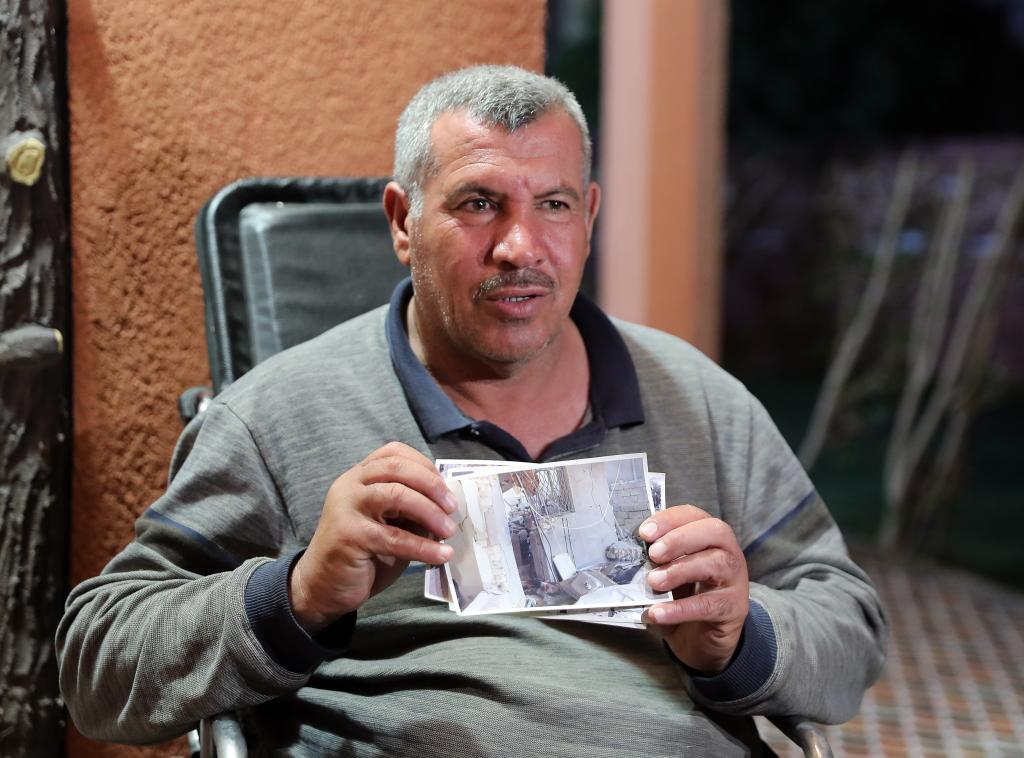 2023年3月6日,在伊拉克北部薩拉赫丁省祖盧耶鎮(zhèn),阿卜杜拉·馬哈茂德·易卜拉欣展示自己家被美軍炸毀后的照片。新華社記者王東震攝