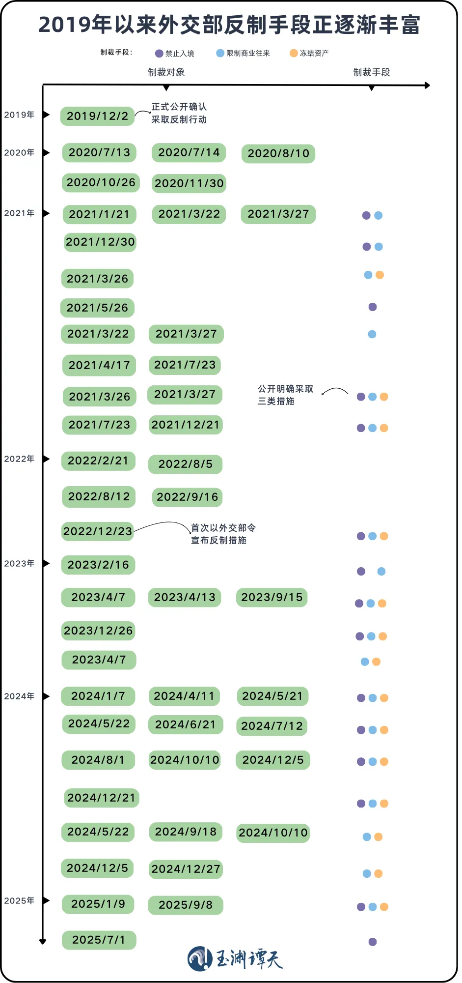 早些年,我國的反制多針對歐美國家,如美國、英國、加拿大。但今年以來,范圍已經(jīng)首次延伸至菲律賓、日本等。