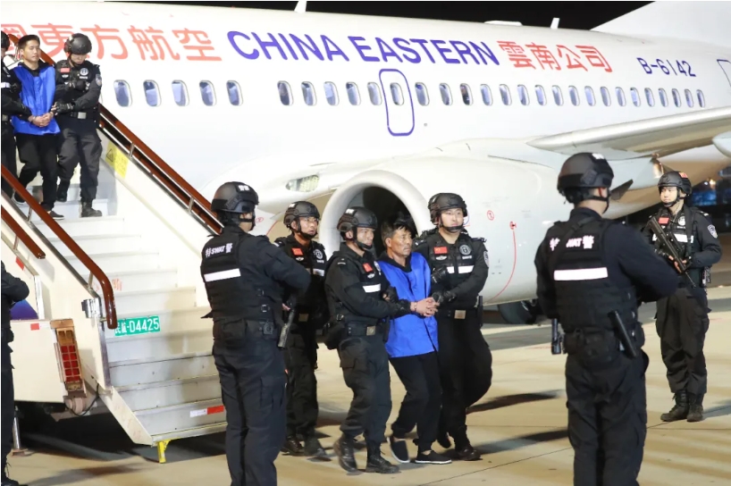 2024年1月30日,在緬甸內(nèi)比都國際機場,緬甸警方依法向我公安機關移交緬北重大犯罪嫌疑人劉正祥。張建鑫 攝