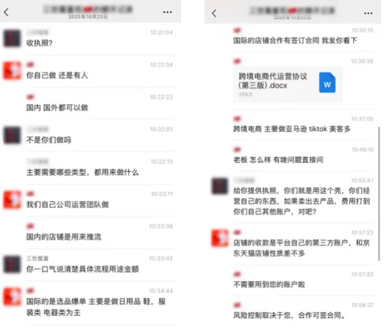 隨后,對(duì)方發(fā)來(lái)一份合同,在其中約定,營(yíng)業(yè)執(zhí)照被用來(lái)為該商戶的客戶注冊(cè)電商店鋪使用。出租方同時(shí)還需要提供身份證等信息,并配合該商戶進(jìn)行注冊(cè)等操作。