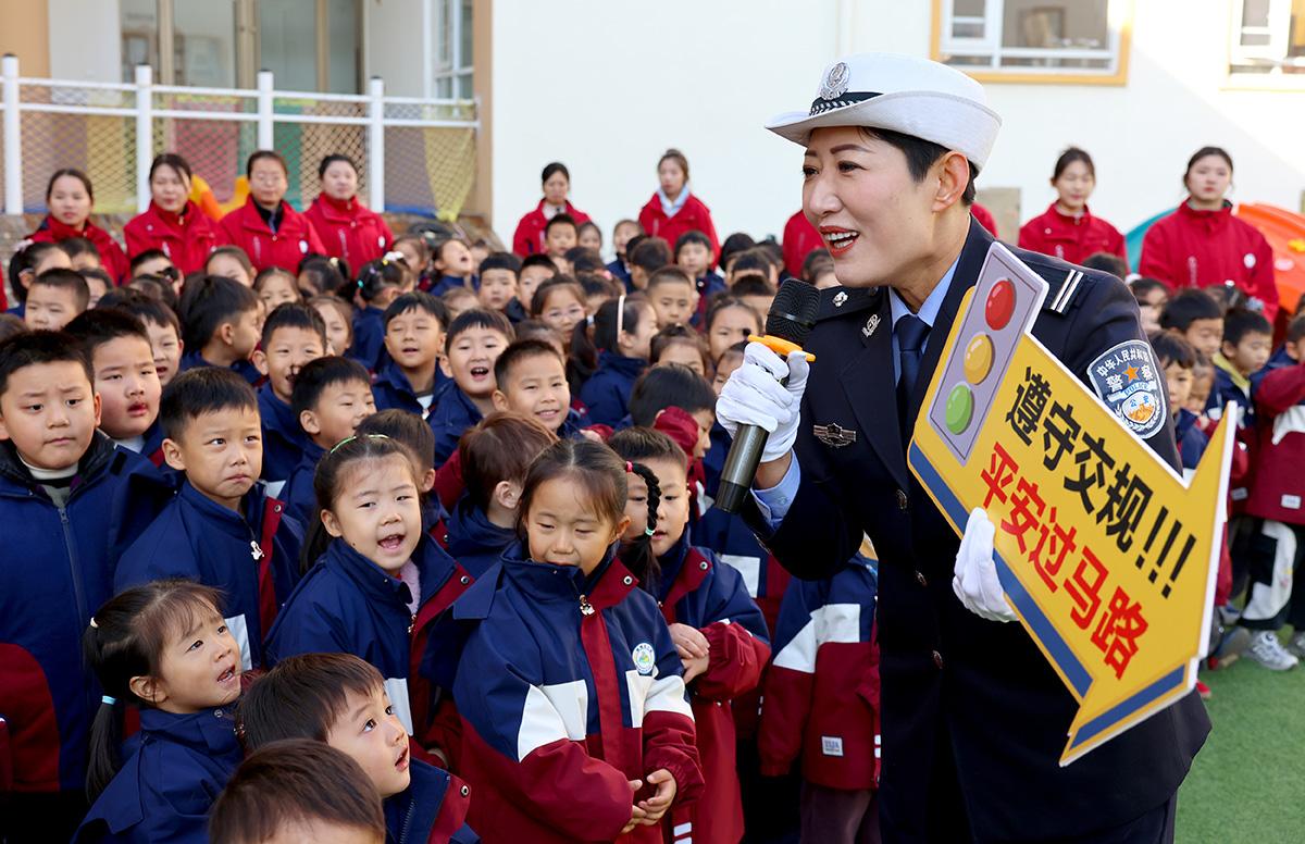 初冬時(shí)節(jié),山東省棗莊市公安局市中分局交通管理大隊(duì)開展冬季“護(hù)苗”交通安全宣傳,組織民警走進(jìn)轄區(qū)幼兒園,通過形式多樣的方式,引導(dǎo)孩子們從小樹立遵守交通安全法規(guī)的意識(shí)。