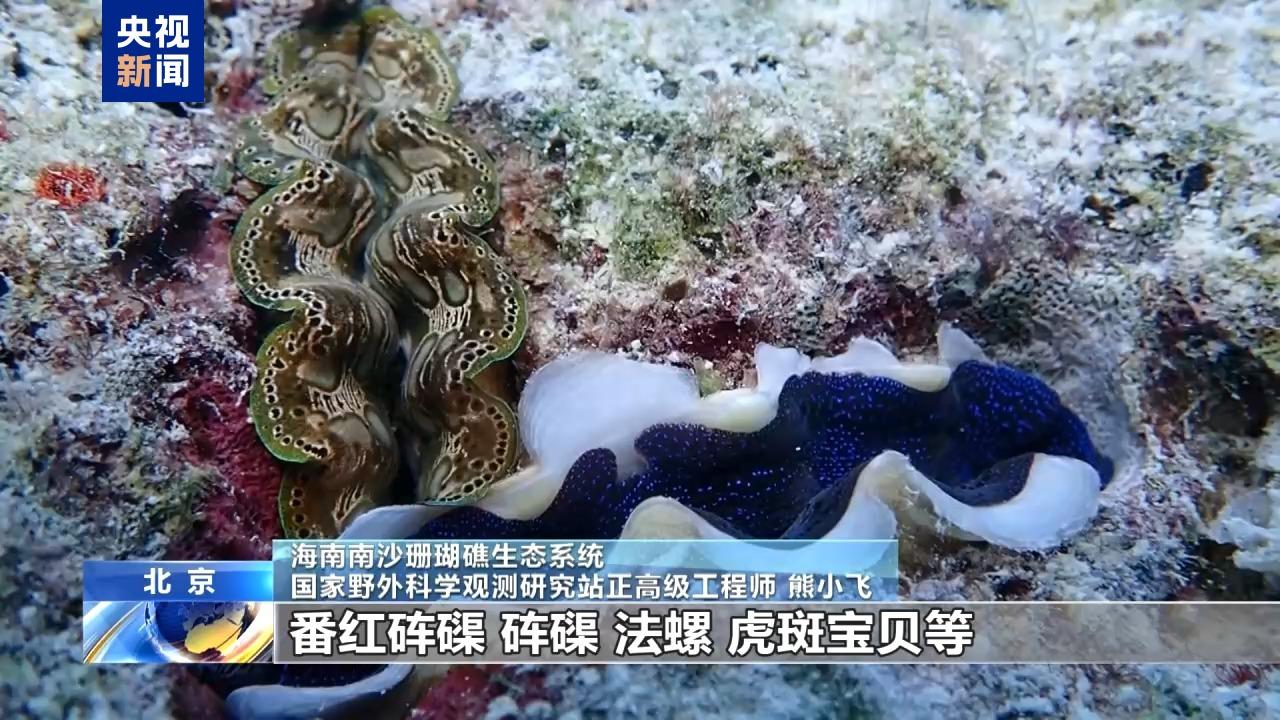 海南南沙珊瑚礁生態(tài)系統(tǒng)、國家野外科學(xué)觀測研究站正高級(jí)工程師熊小飛介紹,黃巖島國家級(jí)自然保護(hù)區(qū)造礁石珊瑚平均覆蓋率達(dá)到38.8%,屬于一個(gè)很高水平,是眾多珍稀瀕危野生動(dòng)物繁衍棲息的重要場所。在這調(diào)查期間發(fā)現(xiàn)了玳瑁、綠海龜、番紅硨磲、硨磲、法螺、虎斑寶貝等國家一、二級(jí)保護(hù)野生動(dòng)物,一共有94種。