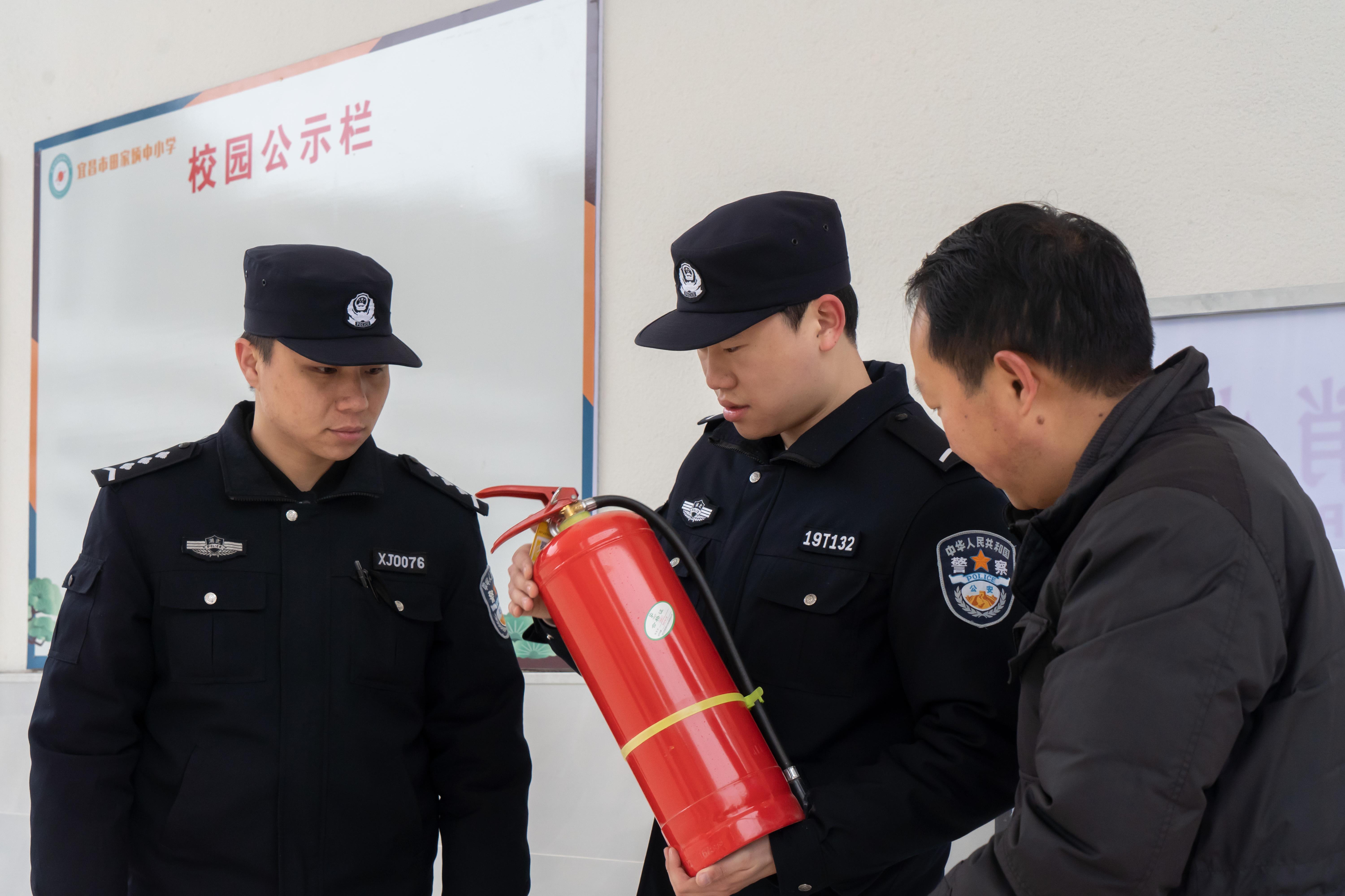 近日,宜昌市公安局伍家崗區(qū)分局民警進(jìn)學(xué)校開展消防安全隱患排查。
