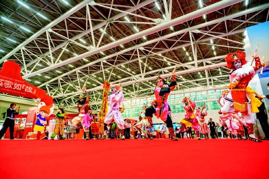 圖為2025年12月21日,雙望鳳悅英歌隊在廣州文化交易會現(xiàn)場演出。 受訪者供圖