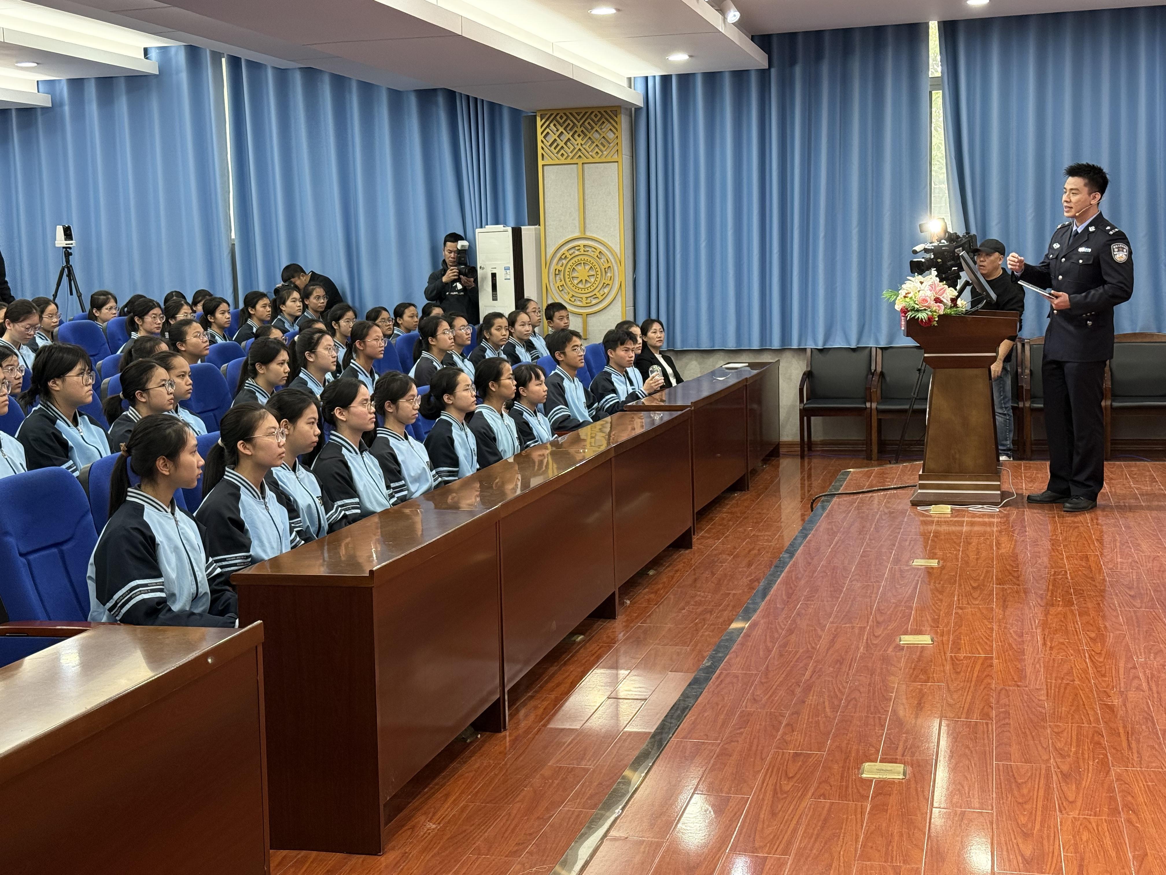 圖為法治副校長(zhǎng)給學(xué)生們上“開學(xué)法治第一課”。