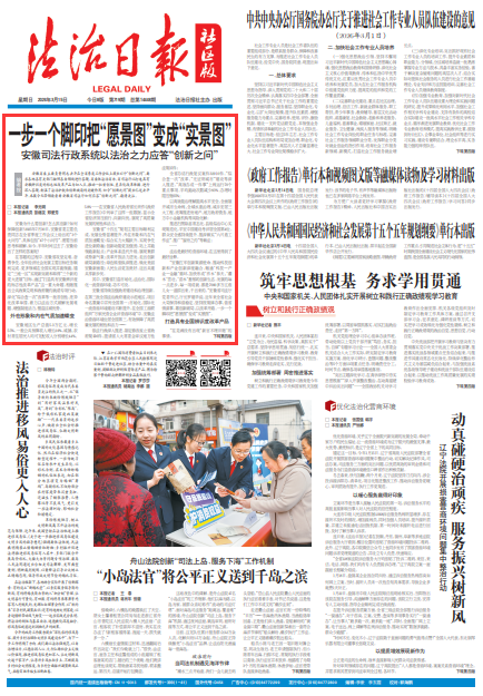 安徽省委主要負責同志去年在全省季度工作會議上提出47個“創(chuàng)新之問”,要求各地各有關部門按照各自領域進行答題,省委依法治省辦、省司法廳以打造具有安徽辨識度的標志性改革產品為切入點,推動一批首創(chuàng)性、差異化改革舉措,進行深入答題,彰顯了法治護航和創(chuàng)新破局的關鍵作用。如今“創(chuàng)新之問”提出已過去半年,本報今天帶領讀者看安徽省司法廳如何應答“創(chuàng)新之問”,敬請關注。