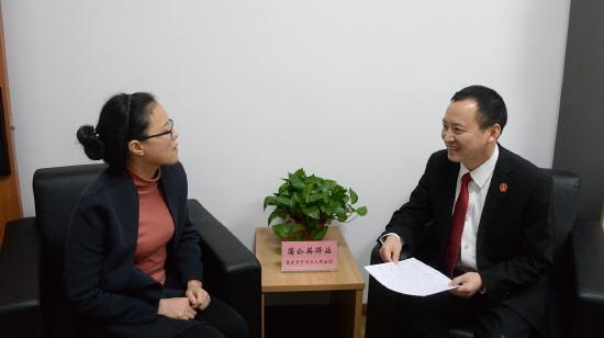 圖為重慶市萬(wàn)州區(qū)法院三級(jí)高級(jí)法官助理蒲昌淵在蒲公英驛站背靠背調(diào)解一起涉未成年人切身利益的離婚案。 萬(wàn)州區(qū)人民法院供圖