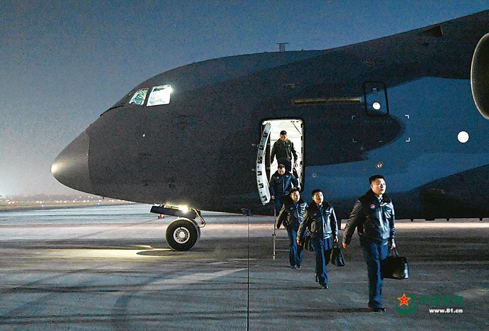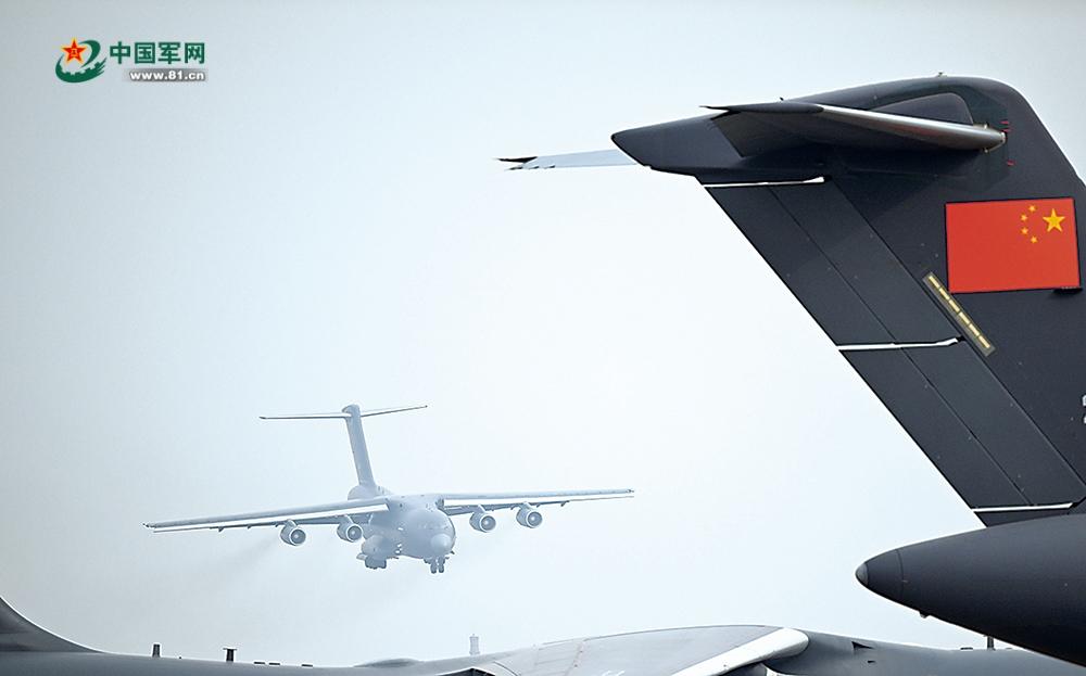 “起飛!”塔臺(tái)下達(dá)指令。伴著震耳欲聾的轟鳴聲,一架架運(yùn)-20在跑道上加速起飛。轟鳴聲漸遠(yuǎn),飛機(jī)組成編隊(duì)飛赴訓(xùn)練空域。
