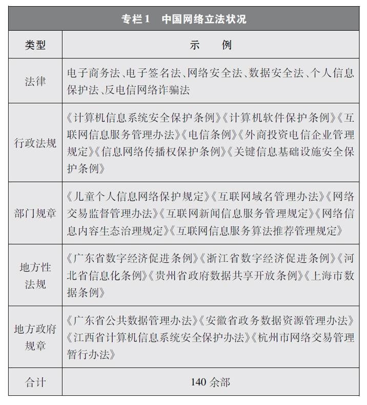 中國網(wǎng)絡(luò)立法隨著互聯(lián)網(wǎng)發(fā)展經(jīng)歷了從無到有、從少到多、由點(diǎn)到面、由面到體的發(fā)展過程。第一階段從1994年至1999年,是接入互聯(lián)網(wǎng)階段。上網(wǎng)用戶和設(shè)備數(shù)量穩(wěn)步增加。這一階段網(wǎng)絡(luò)立法主要聚焦于網(wǎng)絡(luò)基礎(chǔ)設(shè)施安全,即計算機(jī)系統(tǒng)安全和聯(lián)網(wǎng)安全。第二階段從2000年至2011年,是PC互聯(lián)網(wǎng)階段。隨著計算機(jī)數(shù)量逐步增加、上網(wǎng)資費(fèi)逐步降低,用戶上網(wǎng)日益普遍,網(wǎng)絡(luò)信息服務(wù)迅猛發(fā)展。這一階段網(wǎng)絡(luò)立法轉(zhuǎn)向側(cè)重網(wǎng)絡(luò)服務(wù)管理和內(nèi)容管理。第三階段從2012年至今,是移動互聯(lián)網(wǎng)階段。這一階段網(wǎng)絡(luò)立法逐步趨向全面涵蓋網(wǎng)絡(luò)信息服務(wù)、信息化發(fā)展、網(wǎng)絡(luò)安全保護(hù)等在內(nèi)的網(wǎng)絡(luò)綜合治理。在這一進(jìn)程中,中國制定出臺網(wǎng)絡(luò)領(lǐng)域立法140余部,基本形成了以憲法為根本,以法律、行政法規(guī)、部門規(guī)章和地方性法規(guī)、地方政府規(guī)章為依托,以傳統(tǒng)立法為基礎(chǔ),以網(wǎng)絡(luò)內(nèi)容建設(shè)與管理、網(wǎng)絡(luò)安全和信息化等網(wǎng)絡(luò)專門立法為主干的網(wǎng)絡(luò)法律體系,為網(wǎng)絡(luò)強(qiáng)國建設(shè)提供了堅(jiān)實(shí)的制度保障。