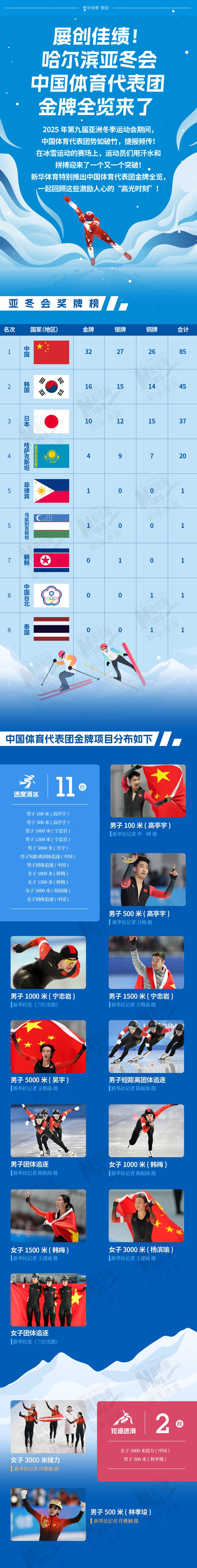 長(zhǎng)圖|屢創(chuàng)佳績(jī)!哈爾濱亞冬會(huì)中國(guó)體育代表團(tuán)金牌全覽來(lái)了!